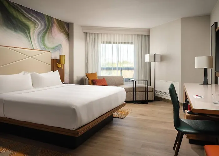 Rooms at Fort Collins Marriott include a flat-screen TV, air conditioning, and a coffee maker. Guests can find premium bedding, hardwood floors, and a modern decor inspired by natural elements. Some rooms offer a seating area for relaxation.