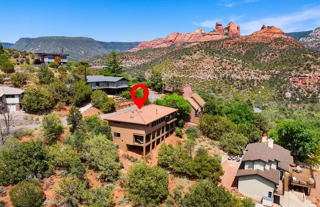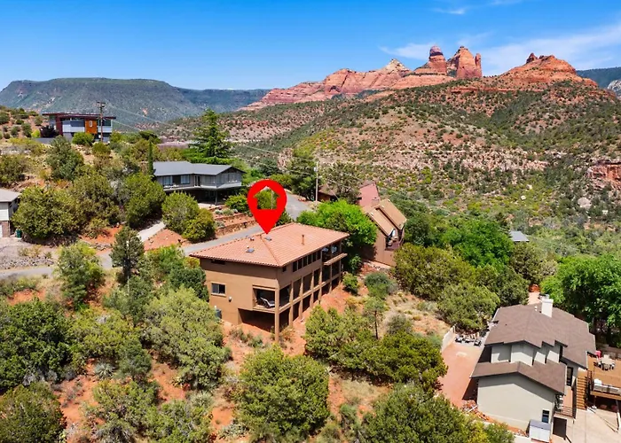 Matterhorn Inn, a premier 4-star Sedona hotel with an 8.9/10 rating, offers breathtaking views of Oak Creek Canyon and red rock pinnacles from private balconies or terraces. This unique hotel features a hot tub, BBQ facilities, and a market for sundries, all in the heart of Sedona's uptown district.