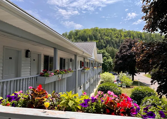 Main Street Motel, a 9.4/10-rated Fish Creek hotel, features individually decorated units and seasonal landscaping. The property offers amenities including free on-site parking, electric vehicle charging stations, and a beautiful courtyard area for relaxation.