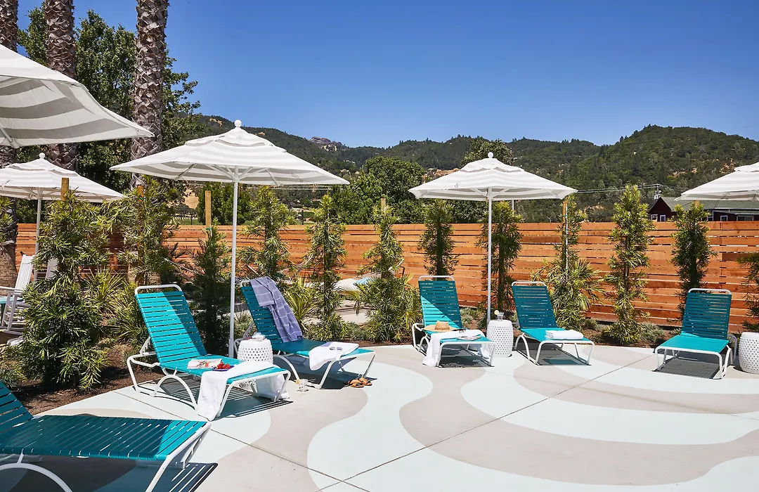 Rooms at Calistoga Motor Lodge And Spa are designed in a retro style, featuring camper-inspired decor and modern comforts such as flat-screen TVs and mini-fridges. Accommodations include King and Queen rooms, as well as spacious suites with patios, perfect for relaxation after a day of exploring. The property promotes a playful atmosphere with features like bocce ball and complimentary bike rentals.