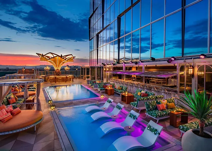 Moxy Downtown Los Angeles features a rooftop bar, outdoor swimming pool, and fitness center, offering a vibrant experience in the heart of the city. This 4-star Los Angeles hotel is situated just steps from the LA Convention Center and Crypto, making it a convenient option for modern nomads.