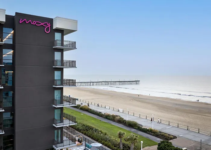 Moxy Virginia Beach Oceanfront is a 2-star hotel that provides a vibrant experience with beachfront access. This Virginia Beach hotel features amenities like an outdoor swimming pool, fitness center, and an on-site bar, catering to a lively, young-at-heart clientele.