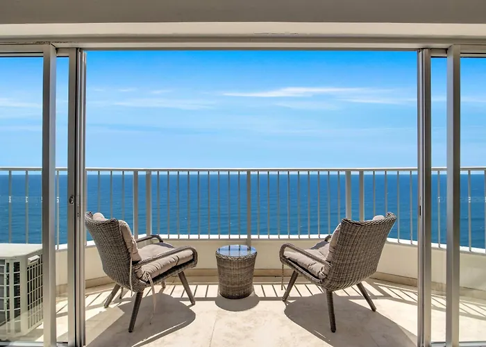 Pacific Plaza Apartments, a 3-star Gold Coast hotel rated 8.8/10 on Booking.com, features an outdoor pool, hot tub, and fitness center with ocean views. Guests enjoy amenities including barbecue facilities and laundry services across individually furnished apartments.