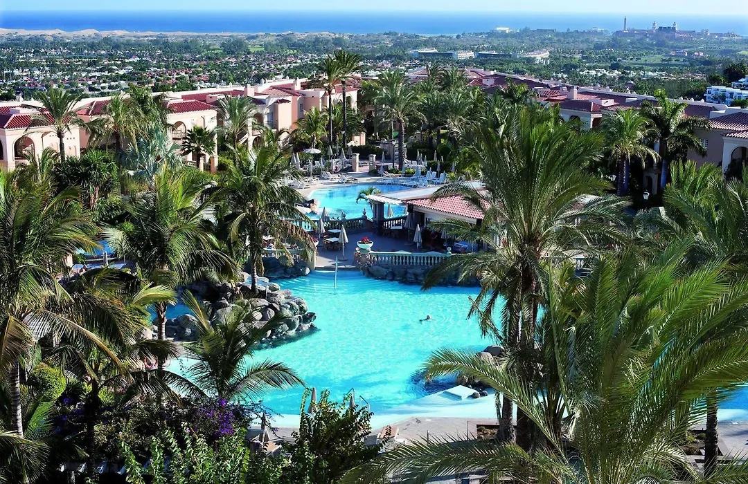 Leisure facilities at this Maspalomas (Gran Canaria) hotel feature two outdoor swimming pools with waterfalls and a waterslide, plus a gym, tennis court, and kids' club. Additionally, entertainment activities are organized for both adults and children.