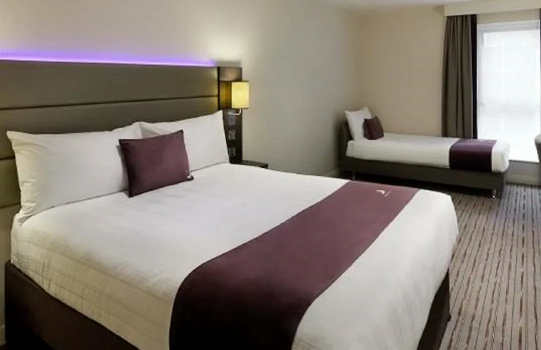 Rooms at Premier Inn London Dagenham include standard double rooms and twin rooms with a double bed and sofa bed. Each room features a super-comfy double or kingsize Hypnos bed, ensuring comfort. Accessible rooms are available, providing more space and wider entry bathrooms.
