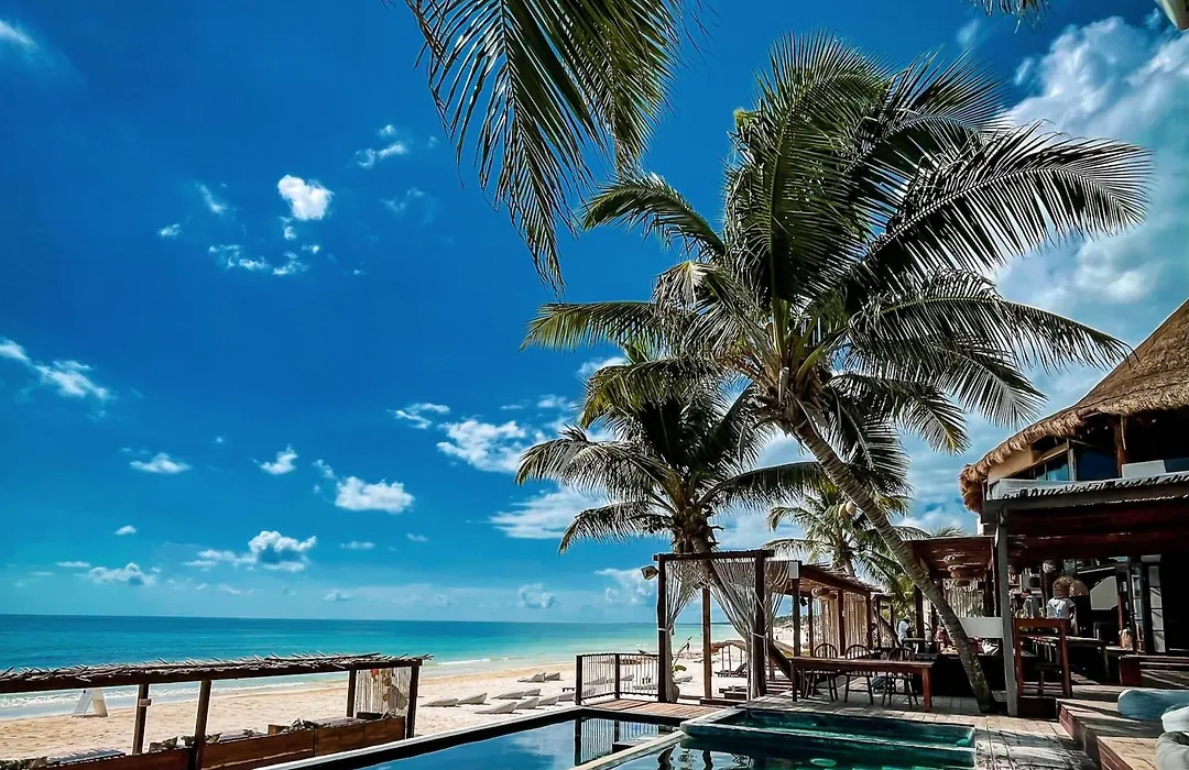 The beach club at Amansala provides a place for relaxation by the sea. Guests can enjoy on-site wellness dining options alongside nearby restaurants like Tago Restaurante and Beso Tulum, both within 0.2 miles of the hotel.