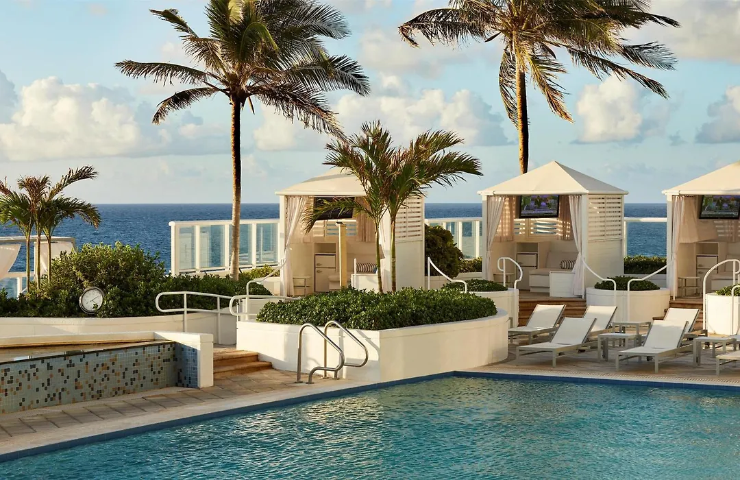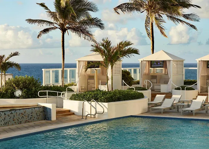 Leisure facilities include a grand pool area with ocean views and private cabanas, along with a fitness center and full-service spa offering a range of body treatments. The prime beach location allows guests easy access to beach activities and nearby entertainment options, such as the International Swimming Hall of Fame, located 1.2 miles away.