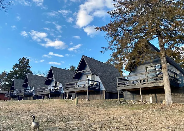 Calm Waters Resort (3-star) features private lakefront cabins along Table Rock Lake, offering amenities such as complimentary Wi-Fi, a seasonal outdoor swimming pool, and pet-friendly policies. Rated 9.2/10 on Booking.com, this Indian Point hotel accommodates guests looking for a relaxing getaway with various water activities.