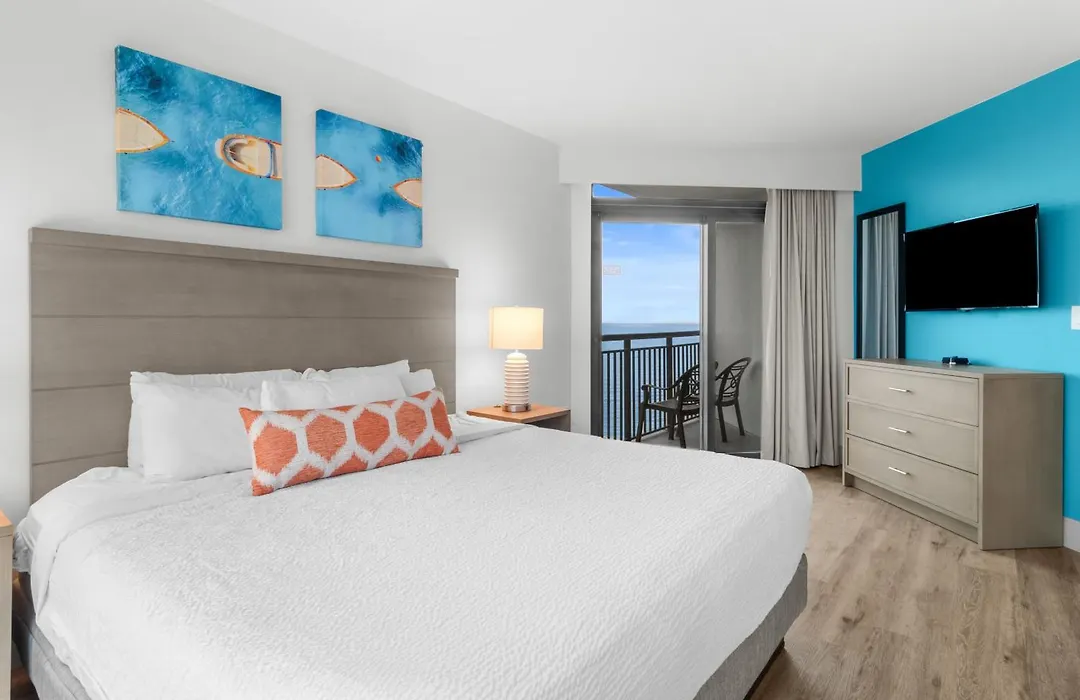 The accommodations at Caribbean Resort Myrtle Beach include spacious oceanfront suites with private balconies, fully equipped kitchens, and comfortable living areas. Guests can choose between one to four-bedroom condos, ideal for families or groups. All rooms are thoughtfully decorated to enhance the beach experience.
