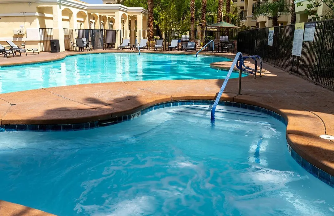 Leisure facilities include two heated swimming pools, a spa, and a fitness center open 24 hours. Guests can engage in tennis and pickleball at the on-site courts. A complimentary shuttle service is available from the resort to the Las Vegas Strip, offering guests easy transportation to major attractions.
