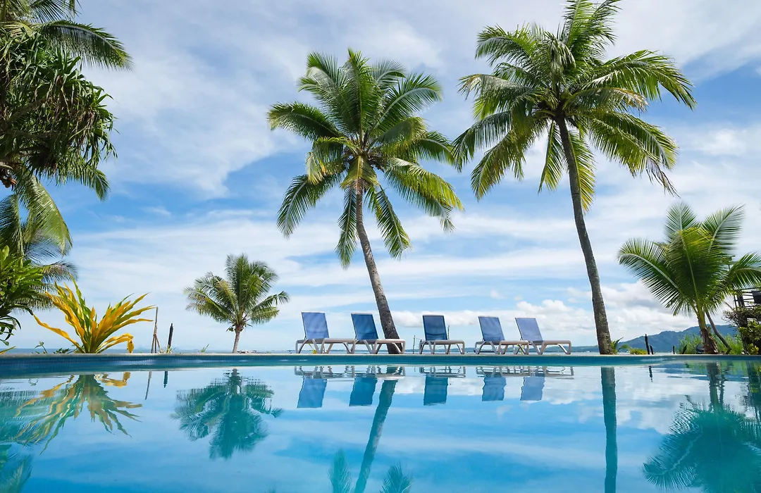 Club Fiji Resort provides a large outdoor swimming pool, hammocks under coconut trees, and daily activities such as coconut husking and cooking lessons. Nightly entertainment includes Polynesian and fire dancing shows. Guests can also enjoy excursions nearby, including zip lining and visits to the famed hot water mud pools.