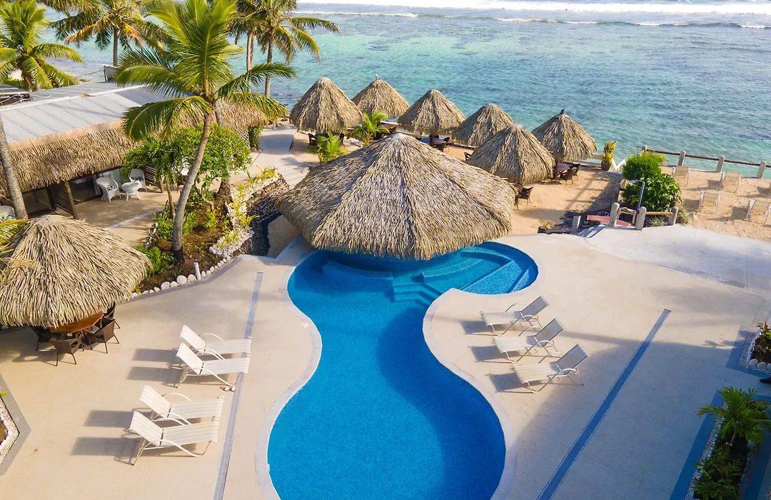 Club Raro Resort- Adults Only (3-star) features beachfront accommodations with stunning views of the Pacific Ocean. This Rarotonga hotel offers an outdoor pool, a private beach area, and a bar that specializes in rum. Guests can enjoy various recreational activities and dining options on-site.