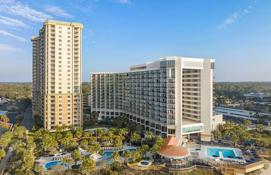 Hilton Myrtle Beach Resort boasts a sand-bottom pool, beachfront dining, and spacious accommodations. This 4-star Briarcliffe Acres hotel offers a range of amenities suited for families and leisure travelers.