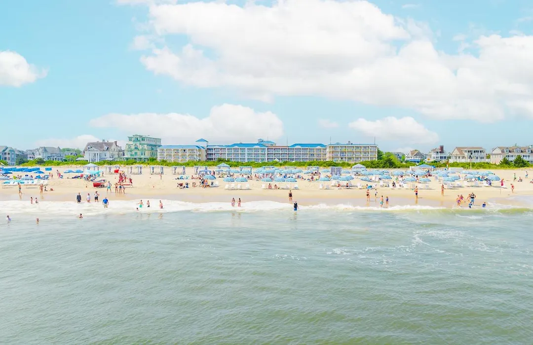 Recreational facilities include a heated outdoor pool and complimentary beach services featuring lounge chairs, umbrellas, and beach attendants. Bicycles are available for rent to explore Cape May's attractions, such as the historic Emlen Physick Estate and nature trails.
