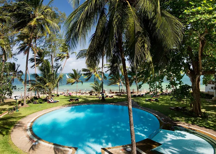 Neptune Beach Resort, a 4-star hotel with an 8.2/10 rating on Booking.com, is situated along the silver sands of Bamburi Beach. This family-friendly resort features a lush garden area and offers various leisure activities, dining options, and well-equipped accommodations.
