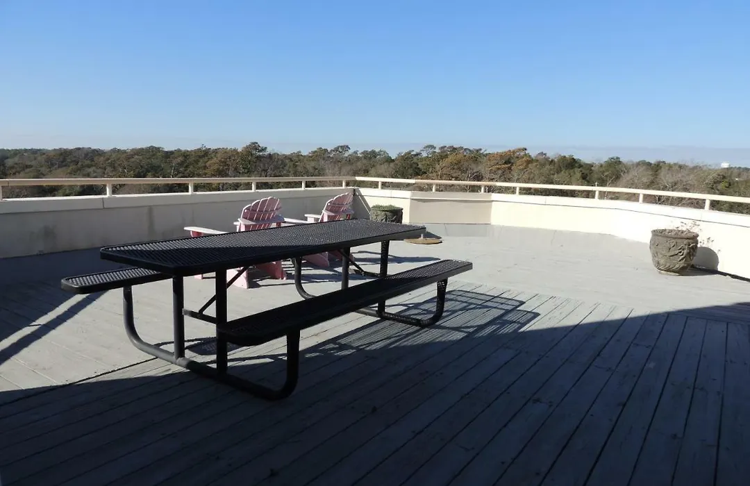 Leisure facilities at Ocean Creek include multiple outdoor pools, a seasonal Beach Club, and a fitness room equipped with Life Fitness equipment. The tennis center offers five clay courts, and guests can enjoy a secluded beachfront for water sports.