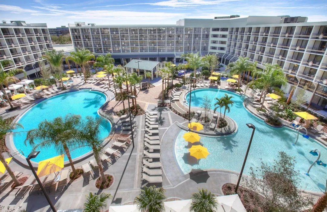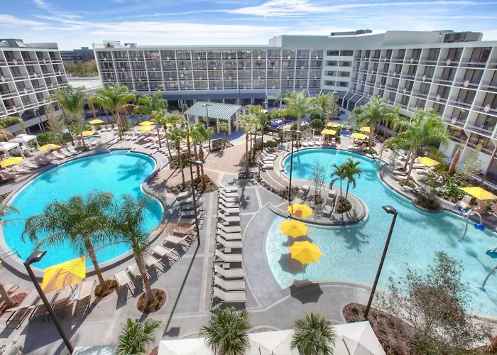 Sheraton Orlando Lake Buena Vista Resort, a 4-star Lake Buena Vista hotel with a 6.8/10 rating on Booking.com, offers modern accommodations and family-friendly amenities. The property features two outdoor pools, a waterslide, and a range of dining options including Zest and the 27 Palms Bar & Grill.