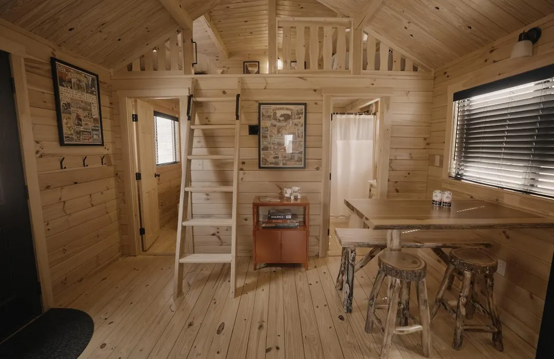 Rooms at Teton Valley Resort include several cabin types, such as the Grand Teton King cabin with a full kitchen and pillow-top king mattress, and the loft cabins that cater to families with 4 ft ceilings. The Teton Signature Lodge features a private bedroom with a queen bed and a pull-out sofa in the living area, suitable for larger groups.