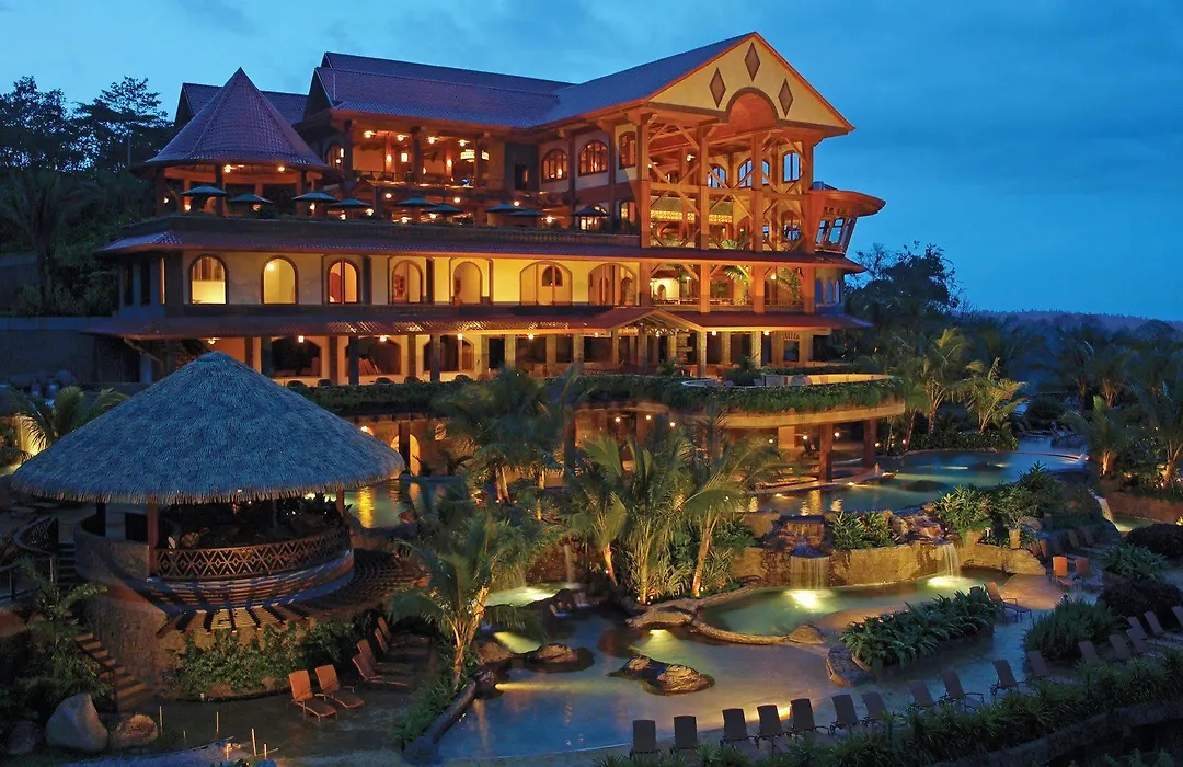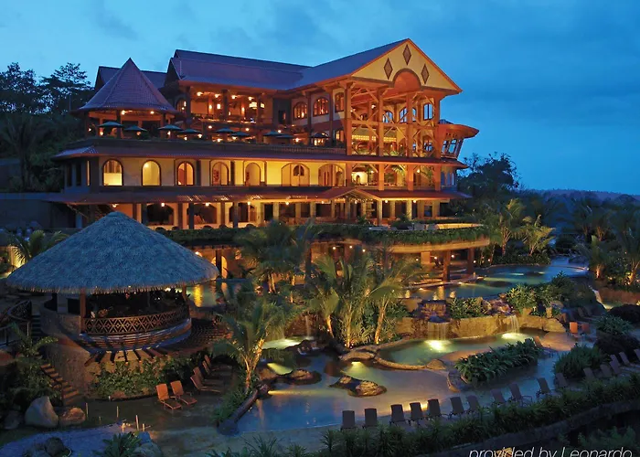 The Springs Resort & Spa At Arenal offers stunning views of the Arenal Volcano, numerous natural hot springs, and various family-friendly amenities in a 5-star setting rated 9.3/10 on Booking.com. Guests can enjoy five unique dining options, access to a full-service spa, and outdoor adventure activities.