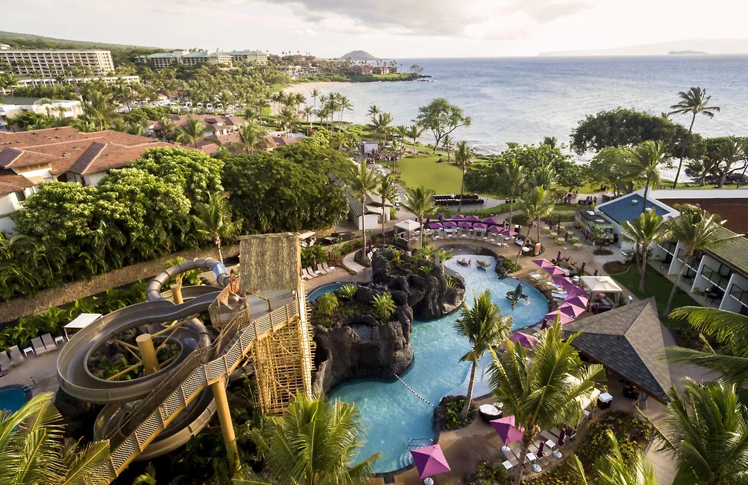 Immerse yourself in the scenic luxury of Wailea Beach Resort - Marriott, Maui, a stunning travel destination just steps from the ocean. This 5-star hotel features five sparkling resort pools, including the longest hotel waterslide in Hawaii, and offers a range of dining options with panoramic views of the Pacific Ocean.