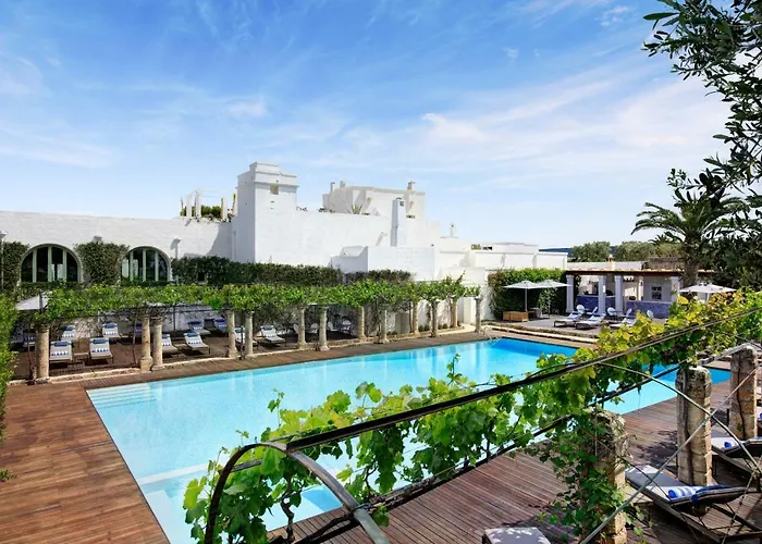 Rocco Forte Masseria Torre Maizza, a 5-star resort rated 9.5/10 on Booking.com, features a private beach club, a 9-hole golf course, and a renowned spa. The hotel provides extensive dining options, including authentic Apulian cuisine, set amidst ancient olive groves.