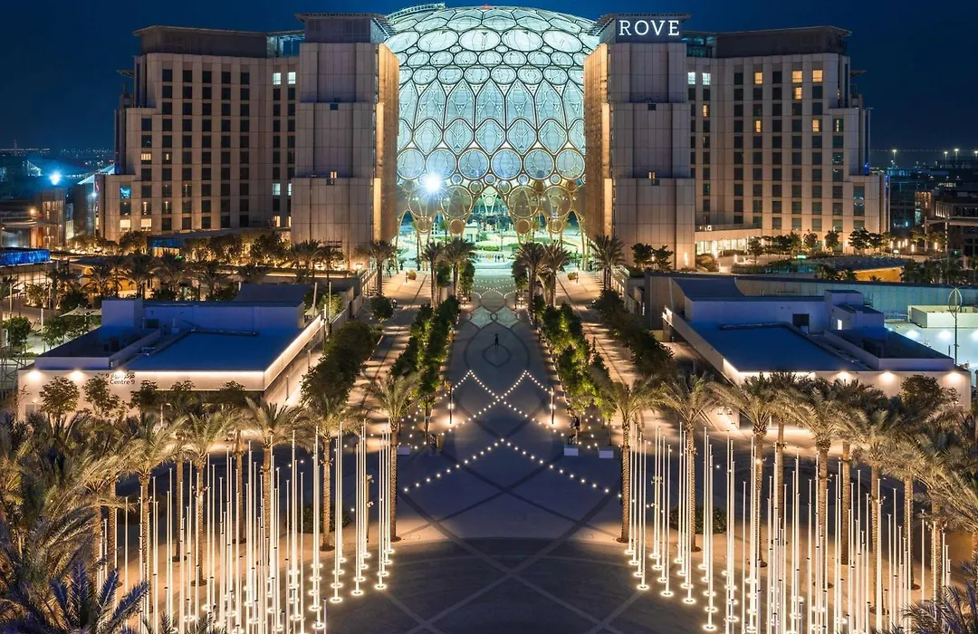 Rove Expo City is a 3-star Dubai hotel with a rating of 9.1/10 on Booking.com, located within the Expo 2020 District. Guests can enjoy amenities including an outdoor swimming pool, fitness centre, and complimentary Wi-Fi throughout the property. The hotel features a restaurant serving American, Indian, and Italian cuisine.