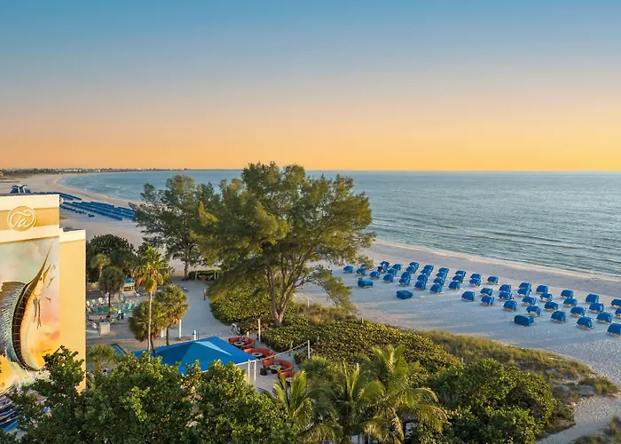 Rumfish Beach At Tradewinds is a 4-star St. Pete Beach hotel featuring beachfront access and a distinct aquatic atmosphere, highlighted by its 33500-gallon aquarium. Guests can enjoy amenities including four pools, five dining options, and a beachfront bar.