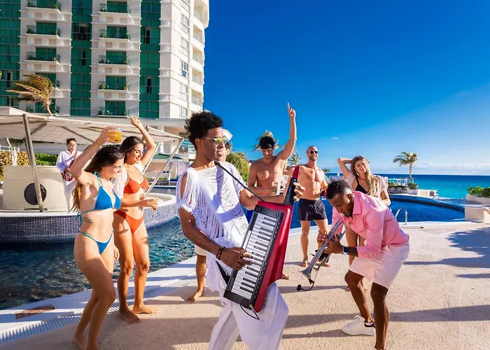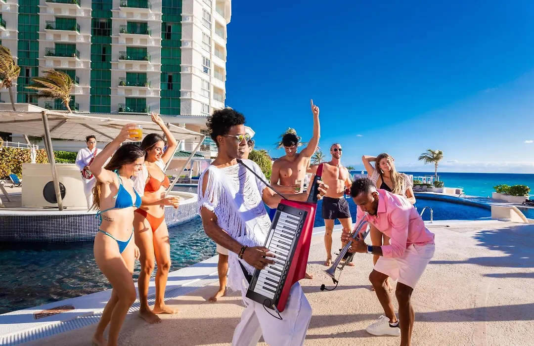 Sandos Cancun All Inclusive - Adults Only is a 5-star resort located on one of Cancun's most attractive beaches, offering luxurious amenities and facilities. This all-inclusive hotel features a cascading, 3-tier infinity pool and a large hot tub.