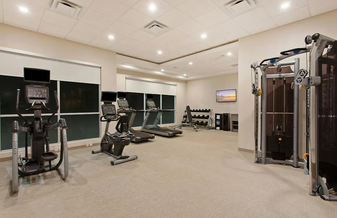 The hotel features a 24/7 market for snacks and a bar that serves craft cocktails and light bites. A complimentary breakfast includes hot and healthy options like breakfast sandwiches, fresh fruit, and Greek yogurt.