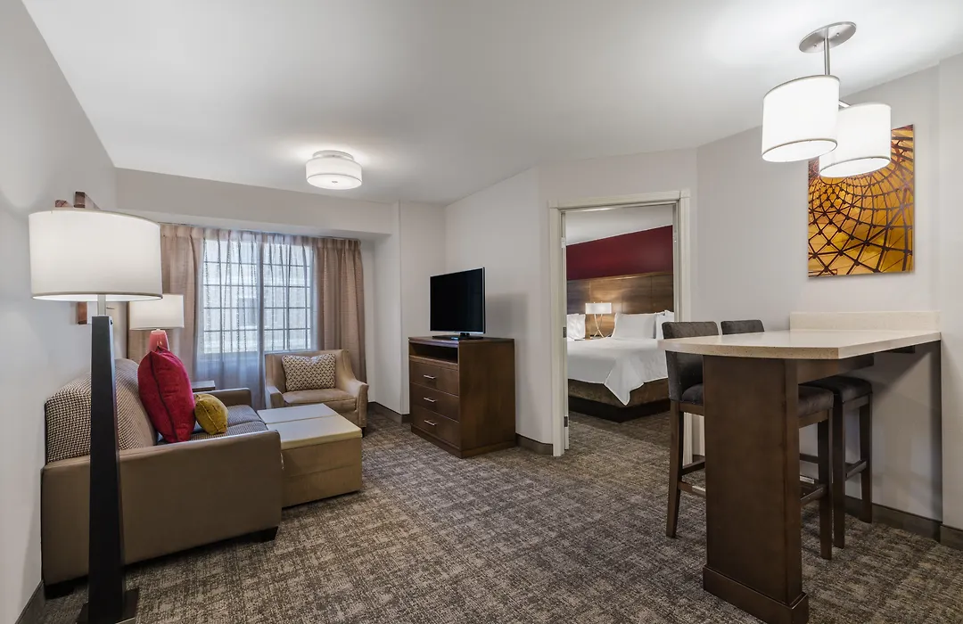Staybridge Suites Anchorage is pet-friendly, allowing dogs for a one-time cleaning fee. The hotel provides accessibility features, including wheelchair-accessible rooms and facilities. Guests can also benefit from free parking and Wi-Fi throughout the property.