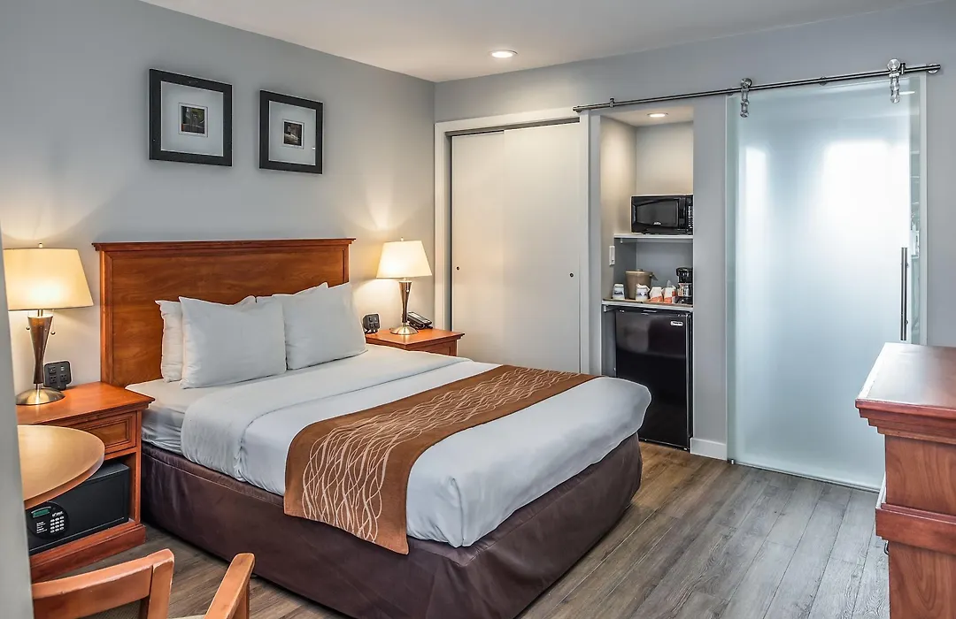 Stylish rooms at The Inn At 1252 Monterey include comfortable bedding, flat-screen TVs, microwaves, and refrigerators. Family suites are available, providing ample space for families with children. Guests can also enjoy complimentary Wi-Fi throughout the hotel.