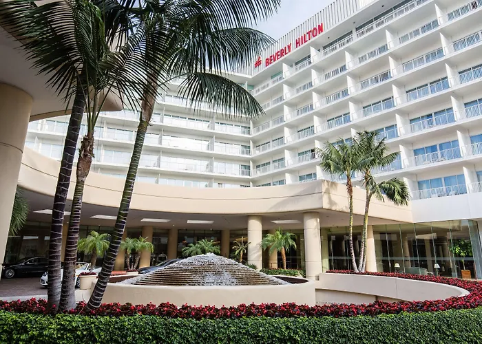 The Beverly Hilton, a 5-star Los Angeles hotel, features modern amenities and luxurious accommodations. Guests enjoy access to world-class dining and a well-appointed fitness center, along with a newly renovated structure that enhances the experience of California living.
