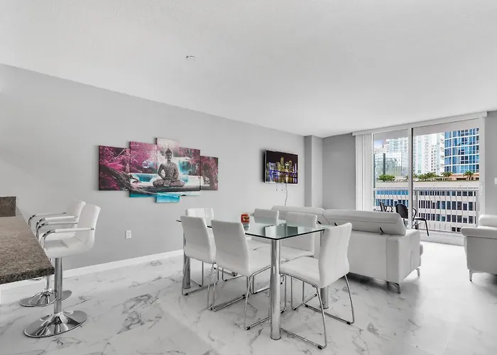 The Club At Brickell Bay Luxury Suites is a 4-star luxury condo featuring a pool with a view and spacious suites. Guests can access amenities such as a business center, laundry facilities, and free private parking.