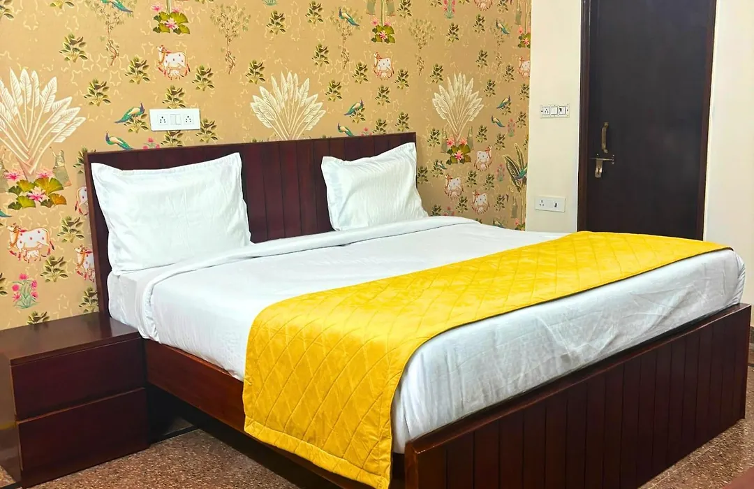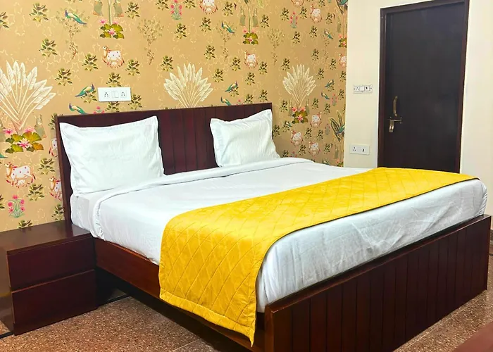 Leisure activities include exploring nearby landmarks such as Garud Govindji Temple and Shri Krishan Kripa Dham, both 2 km away. The hotel also features a garden area for relaxation.