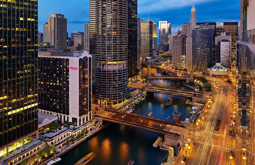 The Westin Chicago River North is a 4-star Chicago hotel featuring 30000 square feet of elegant event space and a prime waterfront location. Guests can enjoy pet-friendly accommodations and on-site dining options including the uniquely positioned 320 RiverBar.