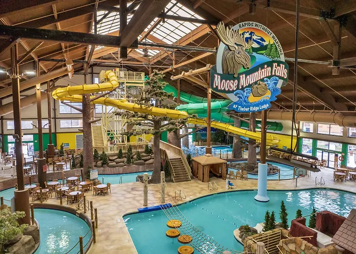 Leisure activities at Timber Ridge Lodge features Moose Mountain Falls, which includes high slides and a lazy river for relaxation. The Adventure Center offers outdoor activities such as archery, hiking, and biking, while equestrian experiences are available at Dan Patch Stables.
