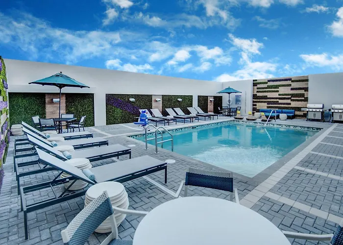 Towneplace Suites by Marriott Miami Airport is a 3-star hotel featuring spacious studio, one- and two-bedroom suites equipped with full kitchens. Amenities include complimentary WiFi, an outdoor pool, and a fitness center.