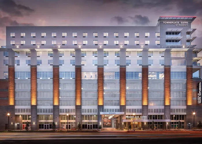TownePlace Suites by Marriott Nashville Midtown is a 4-star hotel featuring spacious accommodations with fully equipped living and sleeping areas. Amenities include a fitness center, an on-site restaurant, and a bar with views of the Nashville skyline.