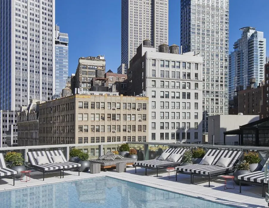 Virgin Hotels New York City boasts a 4-star rating and offers a range of amenities including a seasonal outdoor swimming pool, fitness center, and a restaurant. This hotel caters to modern travelers with its unique chamber design and prime location in Koreatown, rich in dining options and nightlife.
